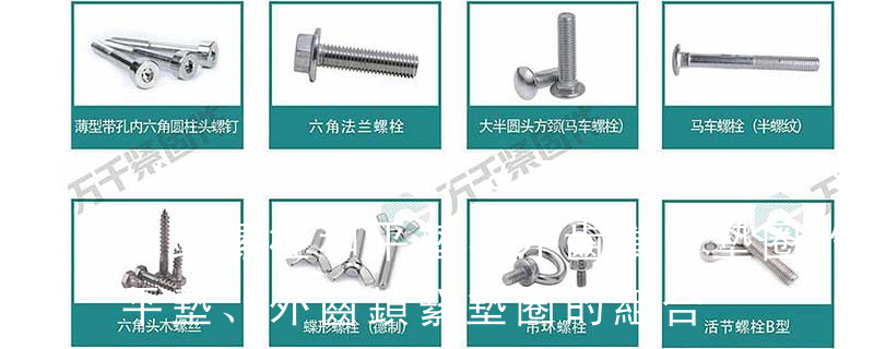 11. 組合件和連接副:組合件是指組合供應的一類緊固件,如將某種機器螺釘(或螺栓、自供螺釘)與平墊圈(或彈簧墊圈、鎖緊墊圈)組合供應;連接副指將某種專用螺栓、螺母和墊圈組合供應的一類緊固件,如鋼結構用高強度大六角頭螺栓連接副。12