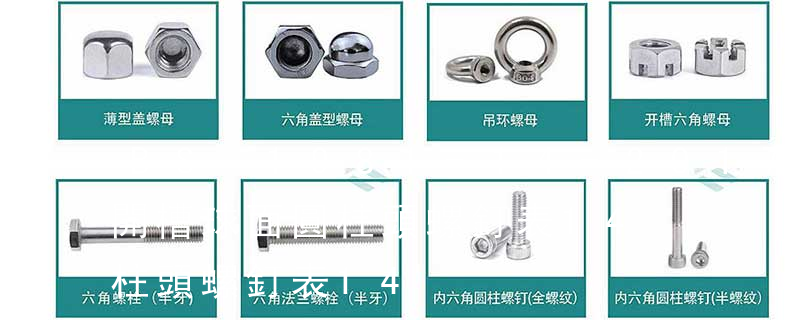 BS84 牙型角為55°的英制螺紋 B.S.F. 標準惠氏細牙系列,一般用途圓柱螺紋 Whit.S 附加的惠氏可選擇系列,一般用途圓柱螺紋 UN 恒定螺距系列的統一螺紋 美國標準ANSIB1.1 標準牙型(牙底是平的或隨意倒圓 標準規定了螺紋規格為M3~M64,A和B級的六角頭螺栓.A級用于D<=24和L<=10D或L<=150mm(按較小值)的螺栓;B級用于D>24或L>10D或L>150(按較小值)的螺栓。外六角螺栓尺寸 外六角螺栓 標準: DIN ANSI BS GB 材料: