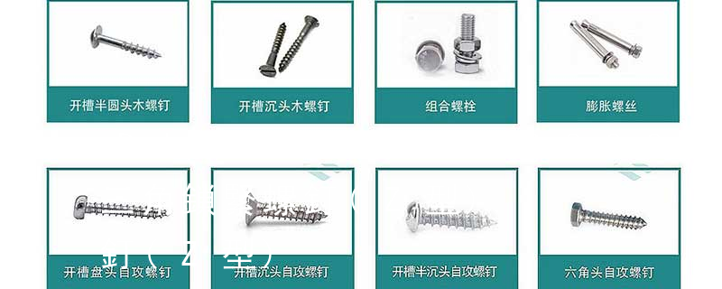 螺栓有:1、方頭螺栓,2、半圓頭方頸螺栓,3、十字槽盤頭螺釘,4、內六角沉頭螺釘,5、方螺母C級,6、蝶形螺母,7、六角頭螺栓,8、十字槽盤頭自攻螺釘。大小有M18、M6、M8、M16、M10、M12、M14、M20等型號。通常用